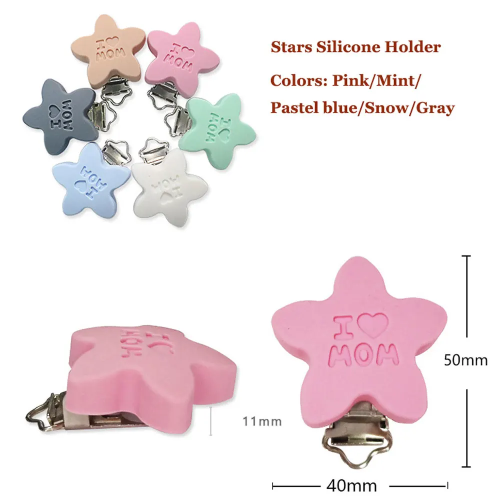 | 3Pcs BPA Free Stars Silicone Clip Baby Pacifier Chupeta Dummy Baby Teether Chain Holder Clips DIY Soother Nursing Teething Toy |