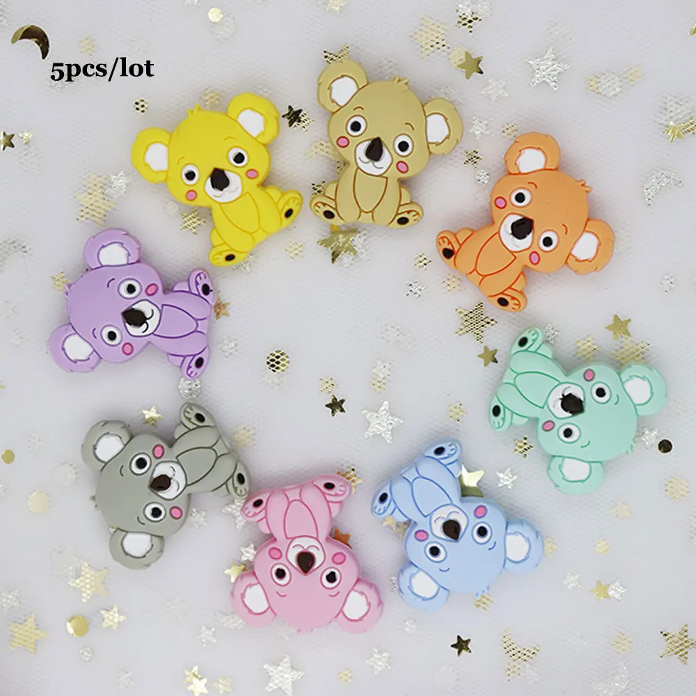 | 5Pcs Koala Perle Silicone Beads For Jewelry Making Teething Necklace Beads Baby Teether Toys DIY Animal Mordedor Baby Product |