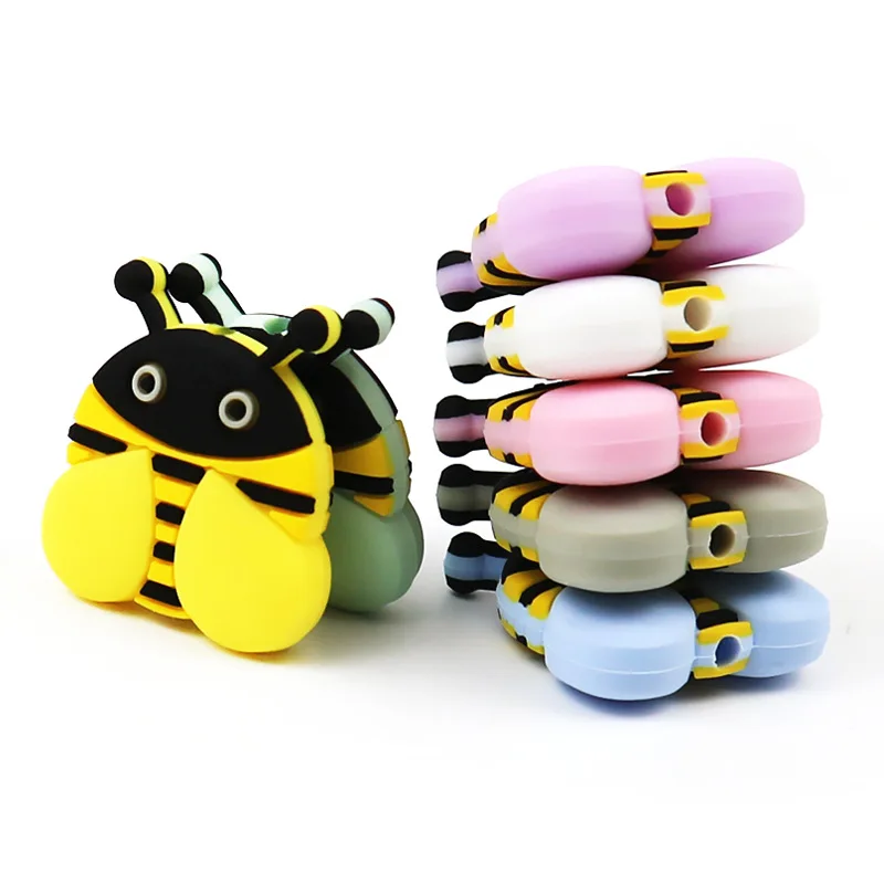 | 5Pcs Honeybee Perle Silicone Beads Baby Teething Rings DIY Making Bee Bead Food Grade Silicone Teether Necklace Toys Accessories |