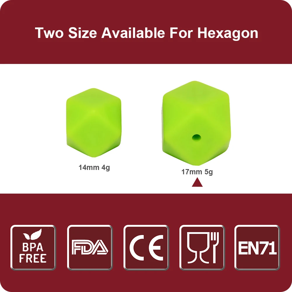 | Mabochewing 10pcs 17mm Hexagon Food Grade BPA Free Soft Baby Chew Teething Silicone Beads Baby Teethers Necklace Making |