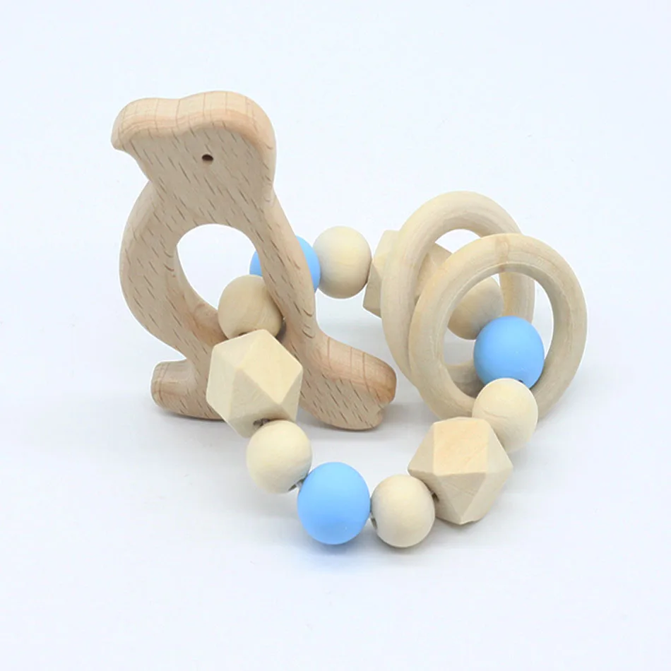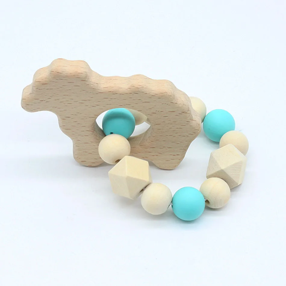| Wood Baby Teether Silicone Bracelet Organic Elephant Teether Non-toxic Food Grade Can Chew Toy Teething Jewelry |