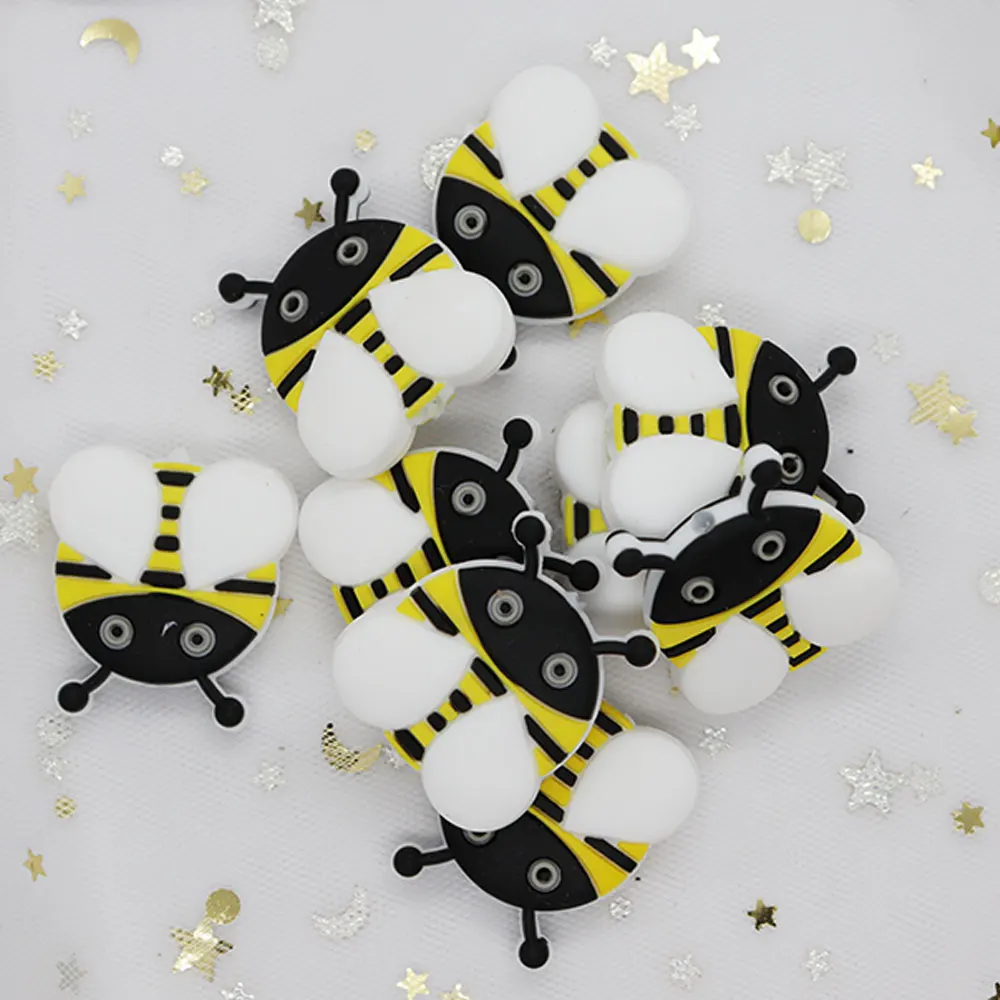 | 5Pcs Honeybee Silicone Beads 2.8cm Teething Toys Perle Silicone Dentition Rodent Siliconen Kralen Mordedor Bee Teething Beads |