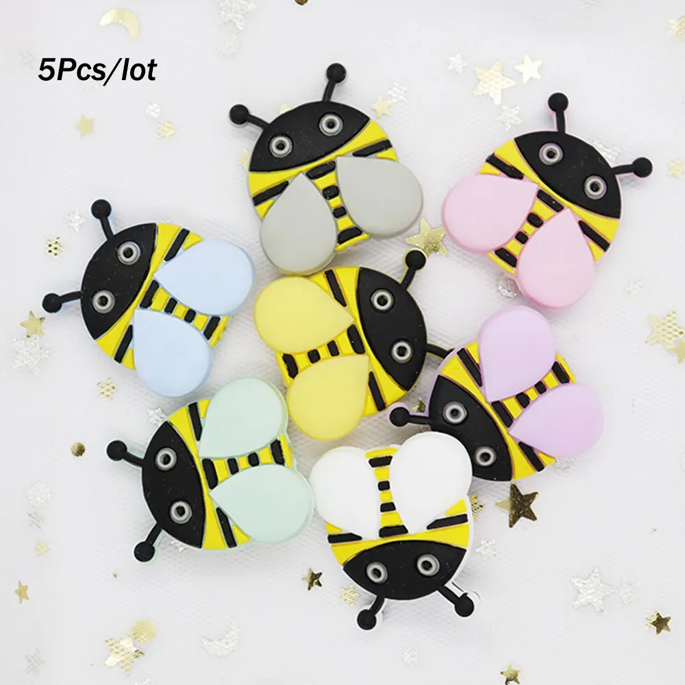 5Pcs Honeybee Silicone Beads 2.8cm Teething Toys Perle Silicone Dentition Rodent Siliconen Kralen Mordedor Bee Teething Beads
