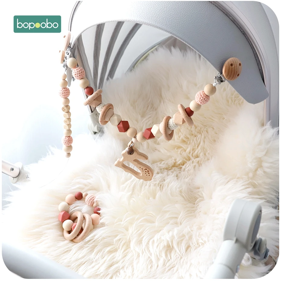 | Bopoobo Baby Silicone Teethers Wooden Rings Bracelet Pacifier Chain Holders Teething Toy Pram Cart Chain Wooden Teether Baby Toy |